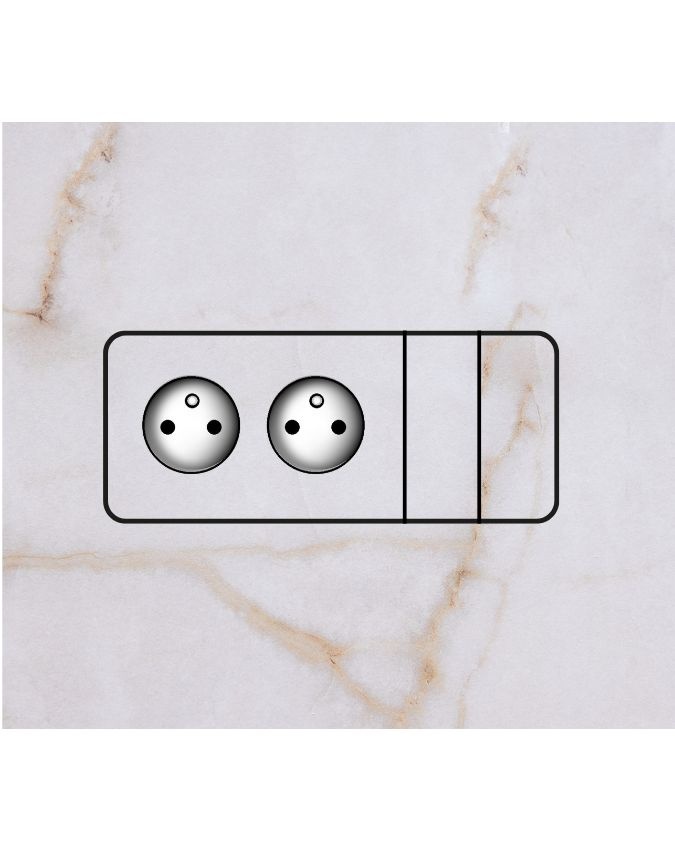 Hidden 2x sockets and a double over-counter switch for light-colored kitchen tiles
