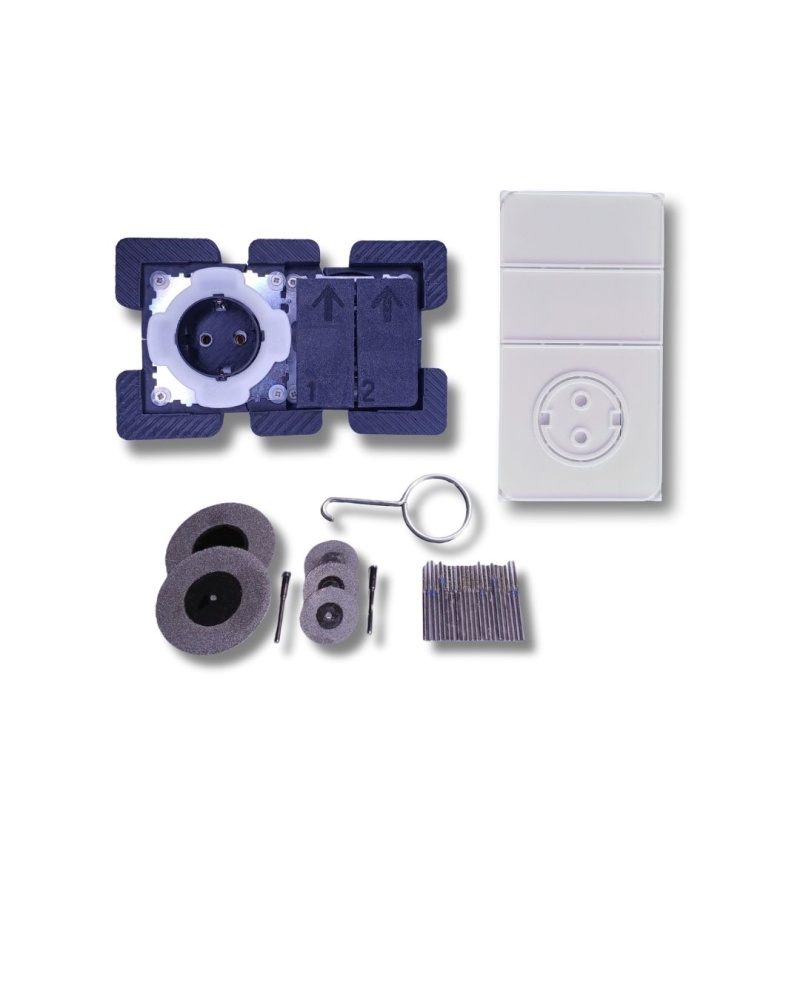 Hidden socket (SCHUKO) and double countertop switch for kitchens for dark tiles