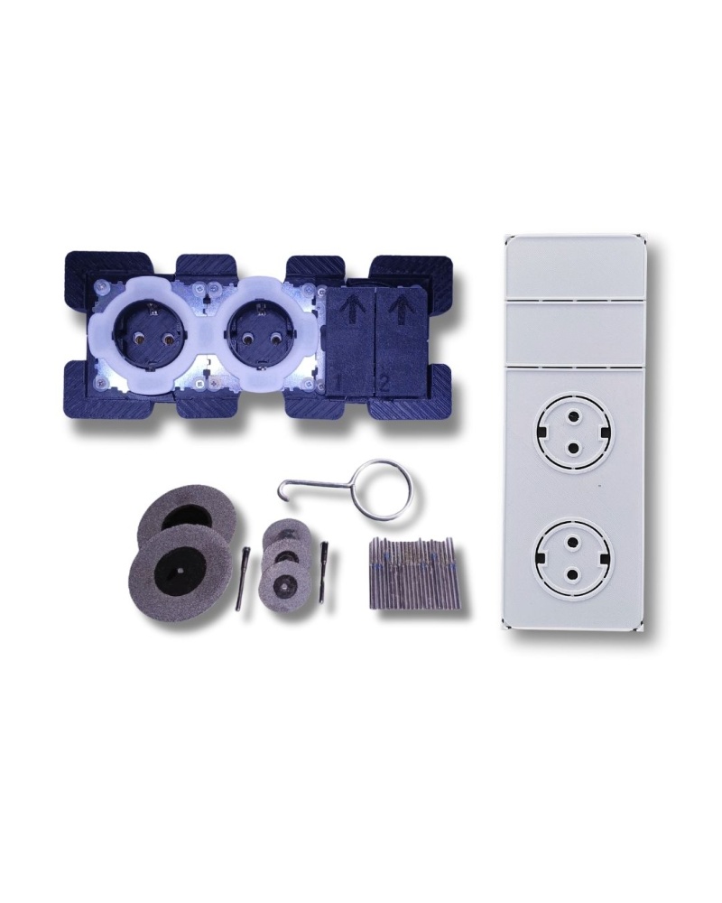 Hidden 2x sockets (SCHUKO) and a double switch for the kitchen countertop, for dark tiles