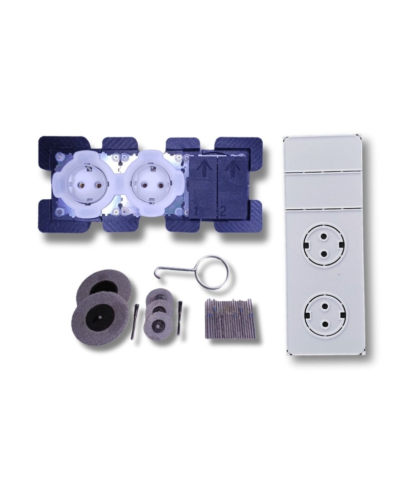 Hidden 2x sockets (SCHUKO) and a double switch for the countertop kitchen for light tiles