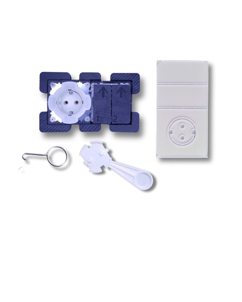 Hidden socket (SCHUKO) and double switch for light-colored tiles without accessories