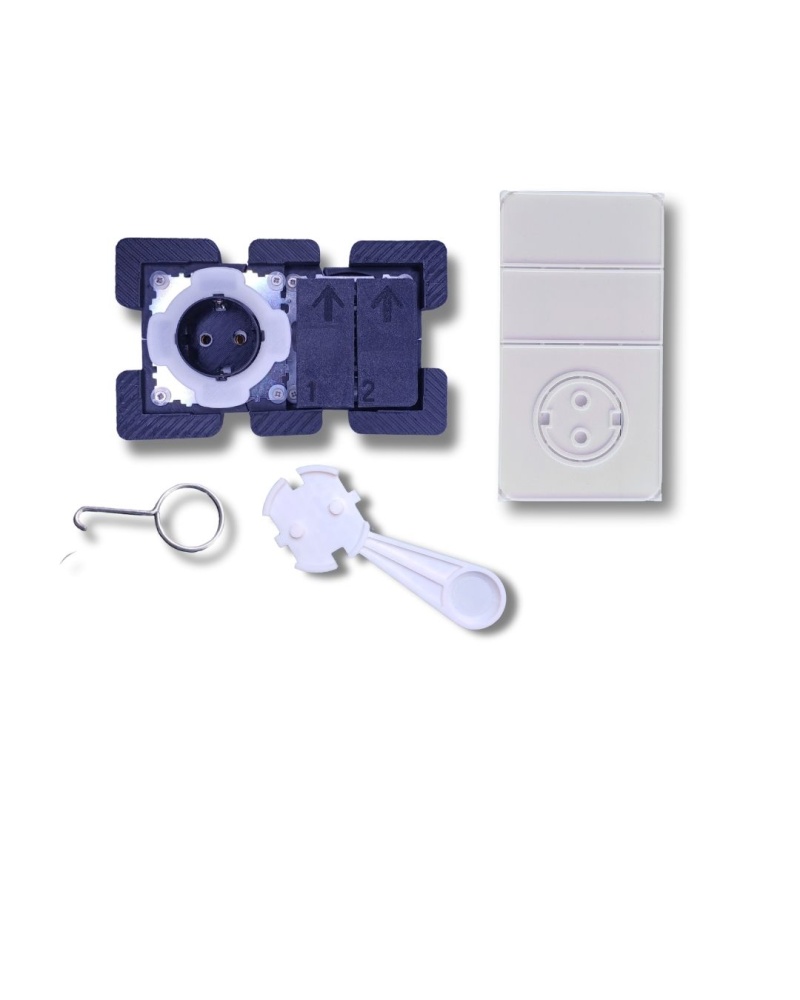 Hidden socket (SCHUKO) and double switch for dark tiles without accessories