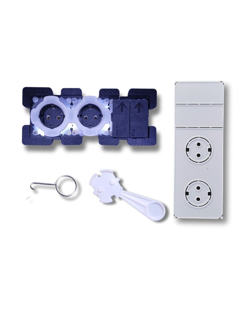 Hidden set of 2 sockets (SCHUKO) and double switch for dark tiles without accessories