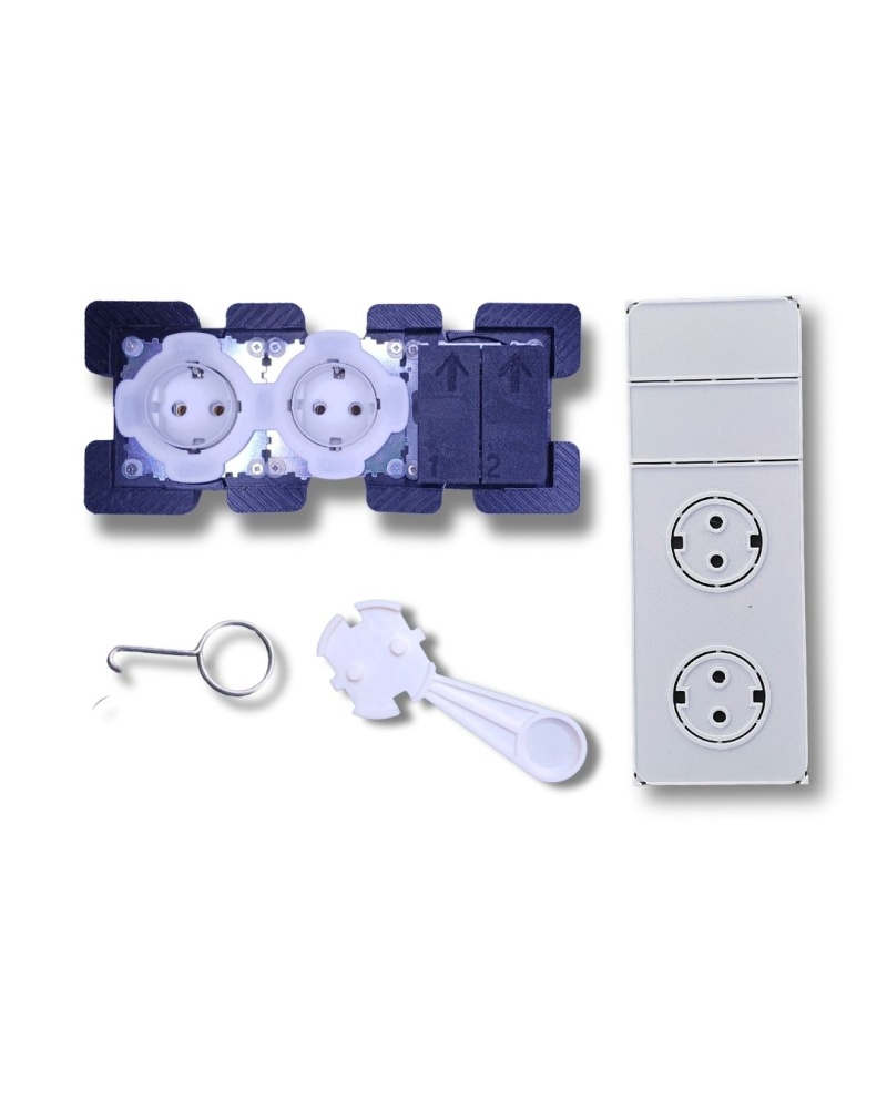 Hidden 2x sockets (SCHUKO) and a double switch for light tiles without accessories