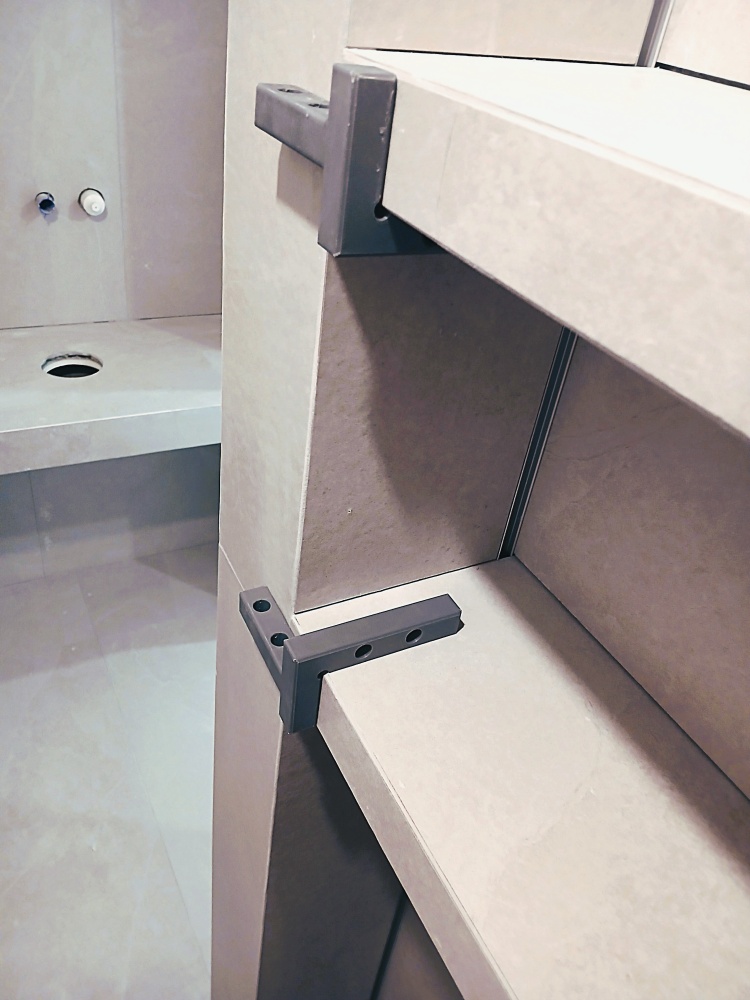 Profesjonalny kątownik 90° przeznaczony dla glazurników, idealny do montażu półek z płytek na tej samej płaszczyźnie co ściana. Umożliwia dokładne wypozycjonowanie płytek pod kątem prostym oraz ich ustabilizowanie podczas montażu, zapobiegając przesuwaniu się elementów.